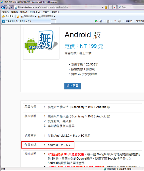 1.無蝦米輸入法官網,Android支援版本沒更新,如下圖只顯示支援到Android 2.2 ~ 5.X